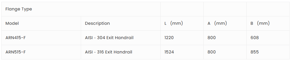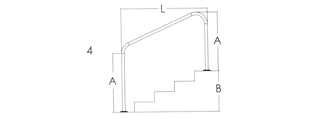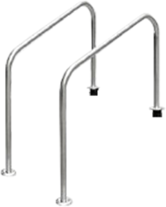 Swimming Pool Exit Handrails ARN Series polished AlSl-304 or AlSl-316 stainless(Φ42mm)pipe. Both anchor and flange installations are available. Suitable for 4 steps or 5 steps of concrete step.
