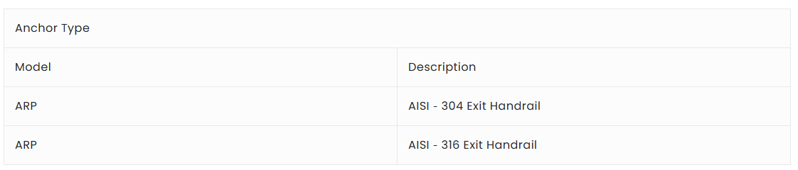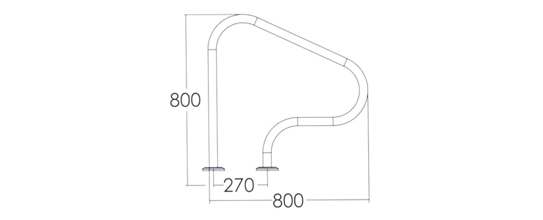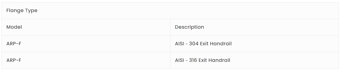 Swimming Pool Exit Handrails ARP Series polished AlSl-304 or AlSl-316 stainless(Φ42mm)pipe. Both anchor and flange installations are available.