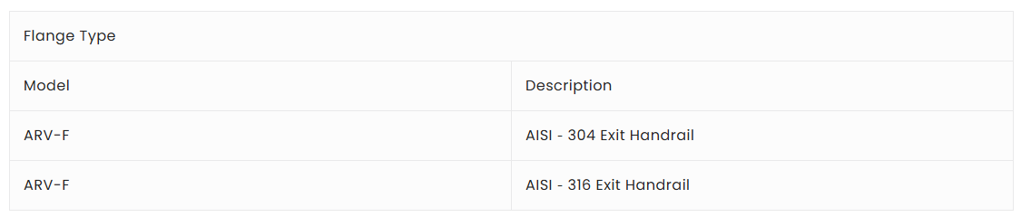 Swimming Pool Exit Handrails ARV Series polished AlSl-304 or AlSl-316 stainless(Φ42mm)pipe. Both anchor and flange installations are available.