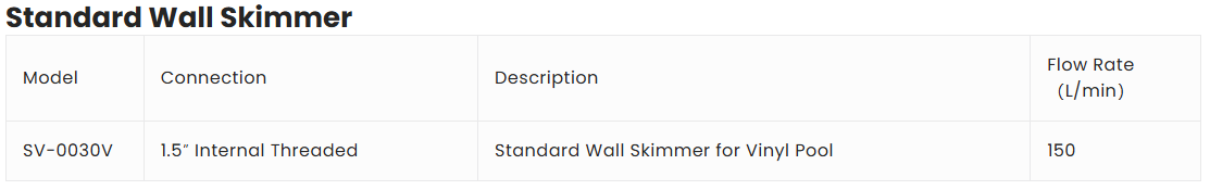 Swimming Pool Skimmer SV-0030V Standard Wall