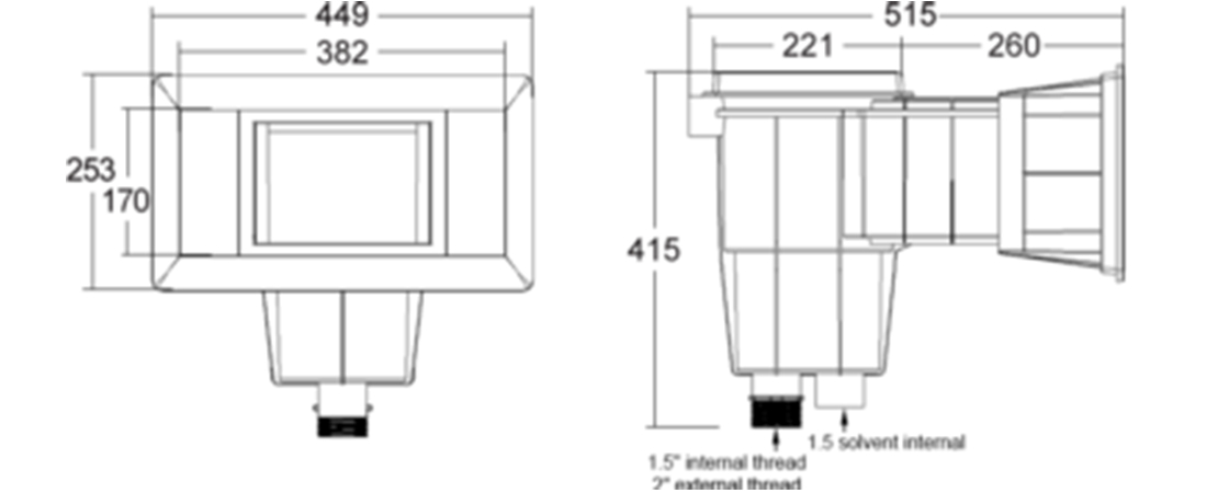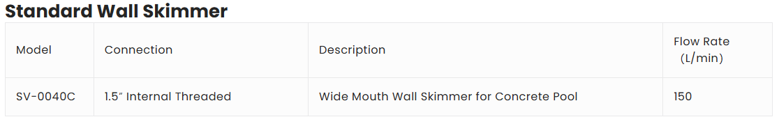 The heavy-duty swimming pool skimmer SV-0040C can be used for residential and commercial swimming pools suitable for concrete, fiberglass and vinyl surfaces. The 3 models are injection molded and made with ABS material; the reinforced material provides the maximum strength and durability for all weather conditions. The high flexibility design allows 1.5″ or 2″ suction connections to the piping.