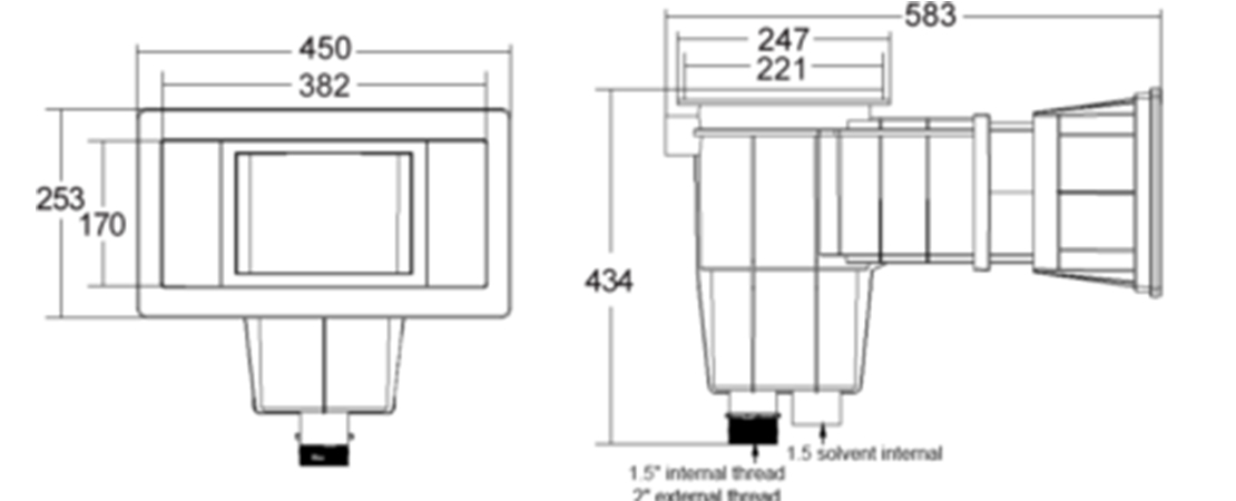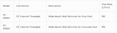 The heavy-duty Wall Skimmer SV-0060 Wide Mouth can be used for residential and commercial swimming pools suitable for concrete, fiberglass and vinyl surfaces. The 3 models are injection molded and made with ABS material; the reinforced material provides the maximum strength and durability for all weather conditions. The high flexibility design allows 1.5″ or 2″ suction connections to the piping.